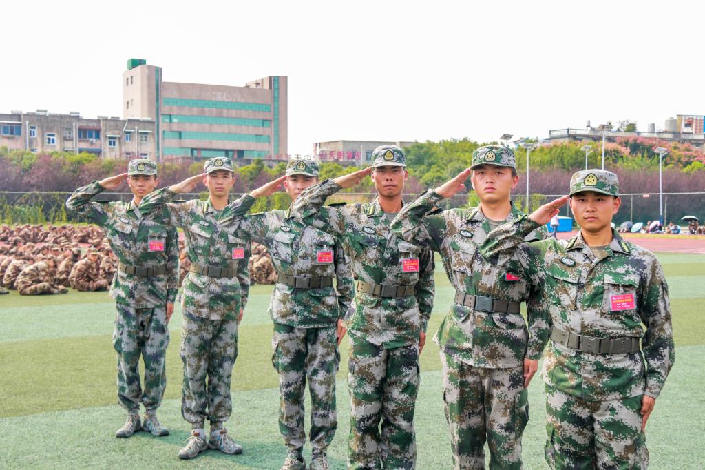 从学生到教官,从学长到连长,身份变化,但不变的是爱国情怀和奉献精神。“军人”是一个让人感到严肃的词,刚开始军训时,叶建伟这群退伍教官“严肃”了几天,但在和20级新生朝夕相处5天后,教官们对新生有了新的了解。朱道广说:“他们听话而且能吃苦,肯坚持,休闲活动也很积极欢乐,都很不错。甚至有些生病、做过手术的学生都会坚持来训练现场,在身体状况允许的条件下一同参与训练。”简单的动作反复练习,齐步走、跑步走、齐步立定、四面转法、解散集合等训练科目,教官们手把手教,用军人精神点点滴滴地影响着新生,短短几天就初见成效。军营生活给这群退伍教官的人生刻下了不可磨灭的印记,在部队养成的习惯贯彻在他们生活的一言一行之中,站立行走间彰显着属于军人的风采。