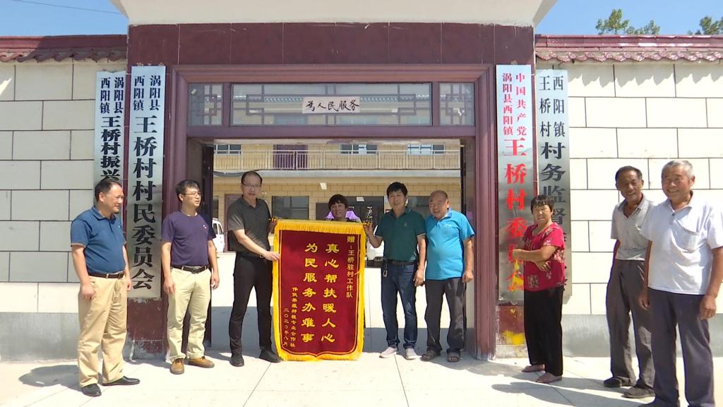 9月7日上午,涡阳县西阳伟侠果蔬种植专业合作社负责人李晓侠和李汉红、郑文化等建档立卡贫困户代表一起来到王桥村党群服务中心将一面写有“真心帮扶暖人心,为民服务办难事”的锦旗送到我校驻村扶贫工作队队长丁景良手中,对工作队三位同志驻村以来对王桥村农民合作社的发展和脱贫攻坚事业的帮助表示衷心的感谢,涡阳县电视台记者一起进行随访。