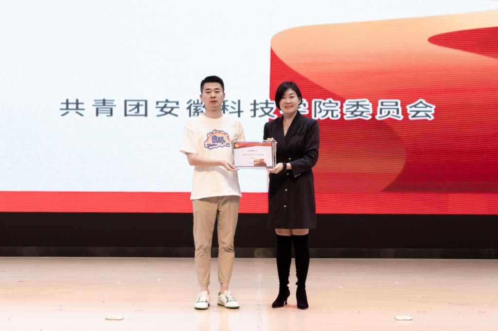 宣讲中,校团委书记张聪为许胜胜颁发了BB手机官方网站_BB(中国)大学生就业“引航员”聘书。(特约通讯员:张古品 摄影:杨天鹏 吴萍青 审核:李刚 姚文均 编辑:李锦)