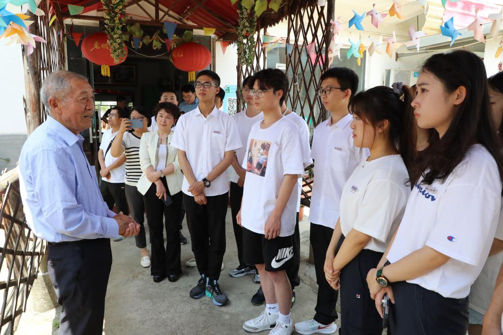 仪式后,一行人到访大包干带头人严金昌所在地,严金昌亲切寄语青年学生。