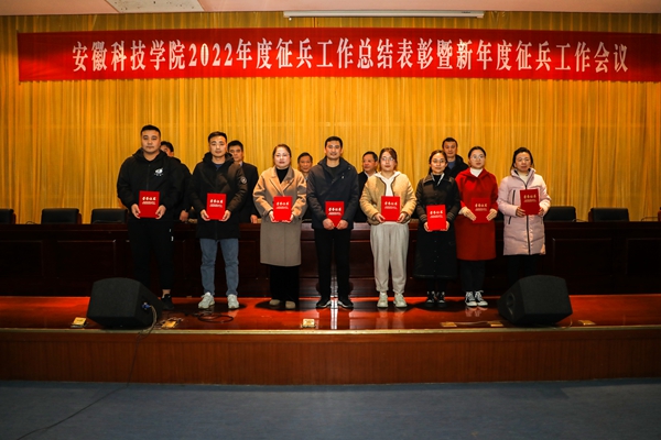12月8日下午,学校在凤阳校区会议中心二楼报告厅召开2022年度征兵工作总结表彰暨新年度征兵工作会议,总结讲评2022年征兵工作,动员部署2023年征兵工作。校党委副书记、院长李震,党委委员、副院长黄远友,党委委员、纪委书记、监察专员王强出席会议。会议由王强主持。