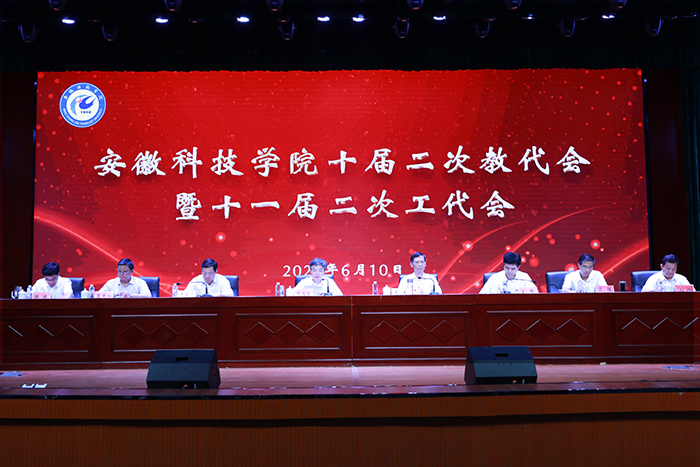 6月10日下午,我校十届二次教代会暨十一届二次工代会圆满完成各项议程,在大学生活动中心胜利闭幕。校党委书记蒋德勤出席会议并讲话,党委副书记、院长李震主持会议。党委委员、副院长黄远友,党委委员、纪委书记、监察专员王强,党委委员、副院长李升和出席大会并在主席台就座,全体代表、列席代表参加大会。