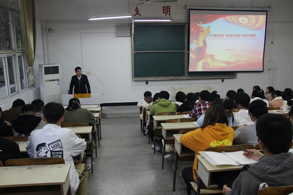 王强从我国高等教育事业的快速发展为切入点,讲述了中国共产党的恢宏壮阔历史和光辉灿烂的奋斗历程,勉励广大学生珍惜大学时光,树立正确的世界观、人生观、价值观,树立坚定的理论自信、道路自信、制度自信、文化自信。
