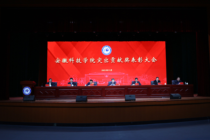 11月11日下午,我校在凤阳校区大学生活动中心召开BB手机官方网站_BB(中国)突出贡献奖表彰大会。校党委书记蒋德勤,党委副书记、校长李震,党委委员、副校长黄远友,党委委员、纪委书记、监察专员王强,党委委员、副校长黄友锐,党委委员、副校长李升和;全校处级干部,正高职称及具有博士学位教师近400人参加表彰大会。会议由李震主持。