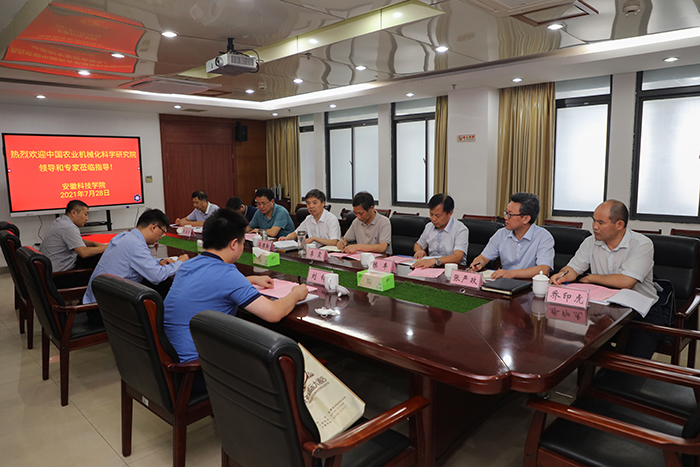 洽谈交流会上,宾主双方就双方签订战略协议、联合培养研究生、互聘研究生导师、青年教师挂职锻炼和研修访学、联合申报农业部等国家级重点研发项目和安徽省重大专项及重点项目、积极争取安徽省科技孵化与创新发展相关政策支持、承担中国农业机械化科学研究院课题研究与成果转化项目、联合申报教学成果奖、共同编写规划教材、共享前沿性智能农机装备精品课程、参与制定国家标准、加盟相关学术机构与联合举办学术研讨会、合作举办农业智能装备工程“中国农机班”、共建中国农业机械化科学研究院小岗基地(试验站)等方面,进行了广泛深入的探讨交流并达成多项合作共识。