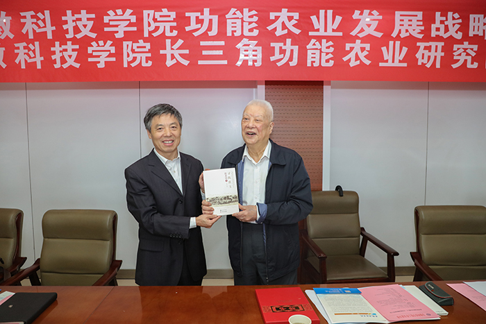 赵其国和蒋德勤共同为BB手机官方网站_BB(中国)长三角功能农业研究院揭牌。赵其国欣然接受蒋德勤为其颁发的“BB手机官方网站_BB(中国)长三角功能农业研究院名誉院长聘书”,为“BB手机官方网站_BB(中国)长三角功能农业研究院”题写院名,为BB手机官方网站_BB(中国)捐赠《寻找沃土》《赵其国文集-土壤科学卷》《赵其国文集-农业发展卷》等著作,为我校70年校庆题词:薪火相传七十载,强农兴农再出发。