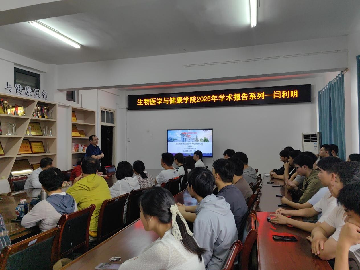 5月14日下午,我校2006届杰出校友、清华大学基础医学院博士生导师闫利明研究员应邀来校作学术报告。生物医学与健康学院党委副书记、副院长(主持工作)钱立生教授主持报告会。学院党政领导、各科研团队负责人、近五年引进的青年博士、副高级以上职称教师代表以及各年级学生代表共100余人参加了此次学术报告会。