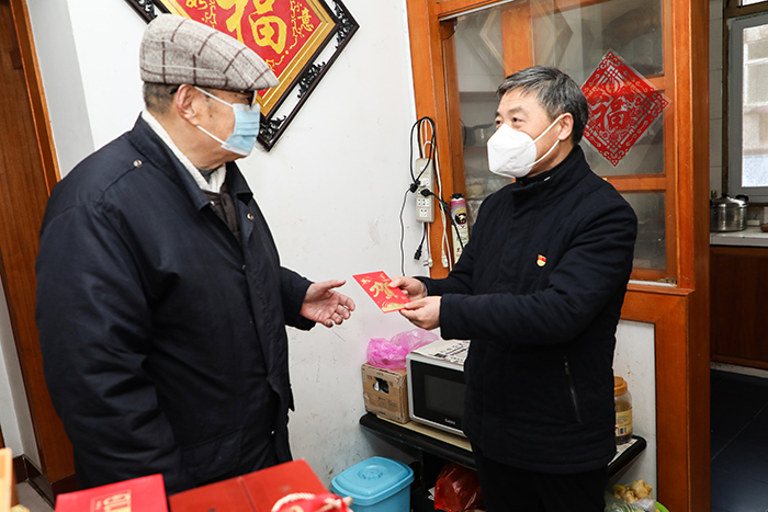 1月12日上午,在新春佳节即将到来之际,党委书记蒋德勤,党委副书记、院长李震,党委委员、副院长黄远友,党委委员、副院长李升和等校领导,深入老党员、老干部、生活困难党员家庭进行走访慰问,代表学校党委向他们致以新春的问候和祝福。党委办公室、党委组织部、离退休工作处等部门主要负责人和有关基层党委(党总支)书记陪同慰问。