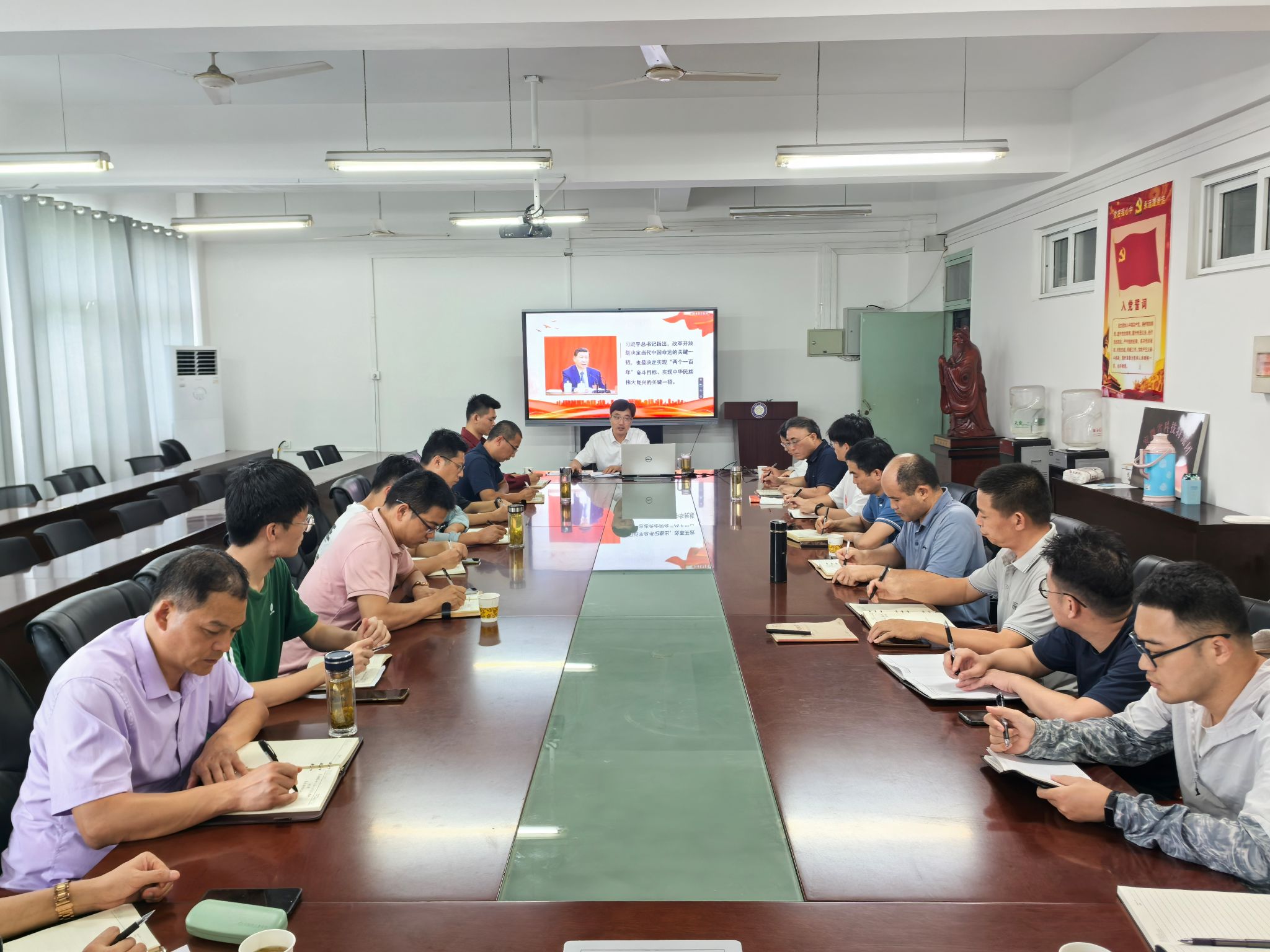 李升和从深刻认识党的二十届三中全会的重要意义、深入学习领会习近平总书记在全会上的重要讲话精神、全面准确理解《决定》提出的进一步全面深化改革重大举措以及全力以赴抓好全会精神贯彻落实等四个方面进行详细解读。他强调,各单位各部门要坚持和加强党对教育工作的全面领导,不断完善党委统一领导、党政齐抓共管、部门各负其责的工作机制,坚定信心、勇毅前行,开拓创新、真抓实干,以钉钉子精神,推动大会精神入脑入心、工作部署落地见效,抓好各项改革任务的落实。
