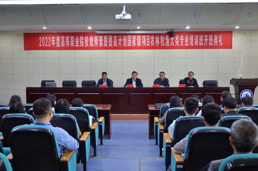 5月9日上午,2022年度安徽省高等职业院校教师素质提高计划国家级培训项目农林牧渔类专业教师课程实施能力提升培训班开班典礼在BB手机官方网站_BB(中国)凤阳校区图书馆第一报告厅成功举行。我校党委委员、副院长李升和教授,安徽工商职业学院汪贤武教授受邀出席开班仪式,仪式由继续教育学院党支部书记、院长杨维来主持。