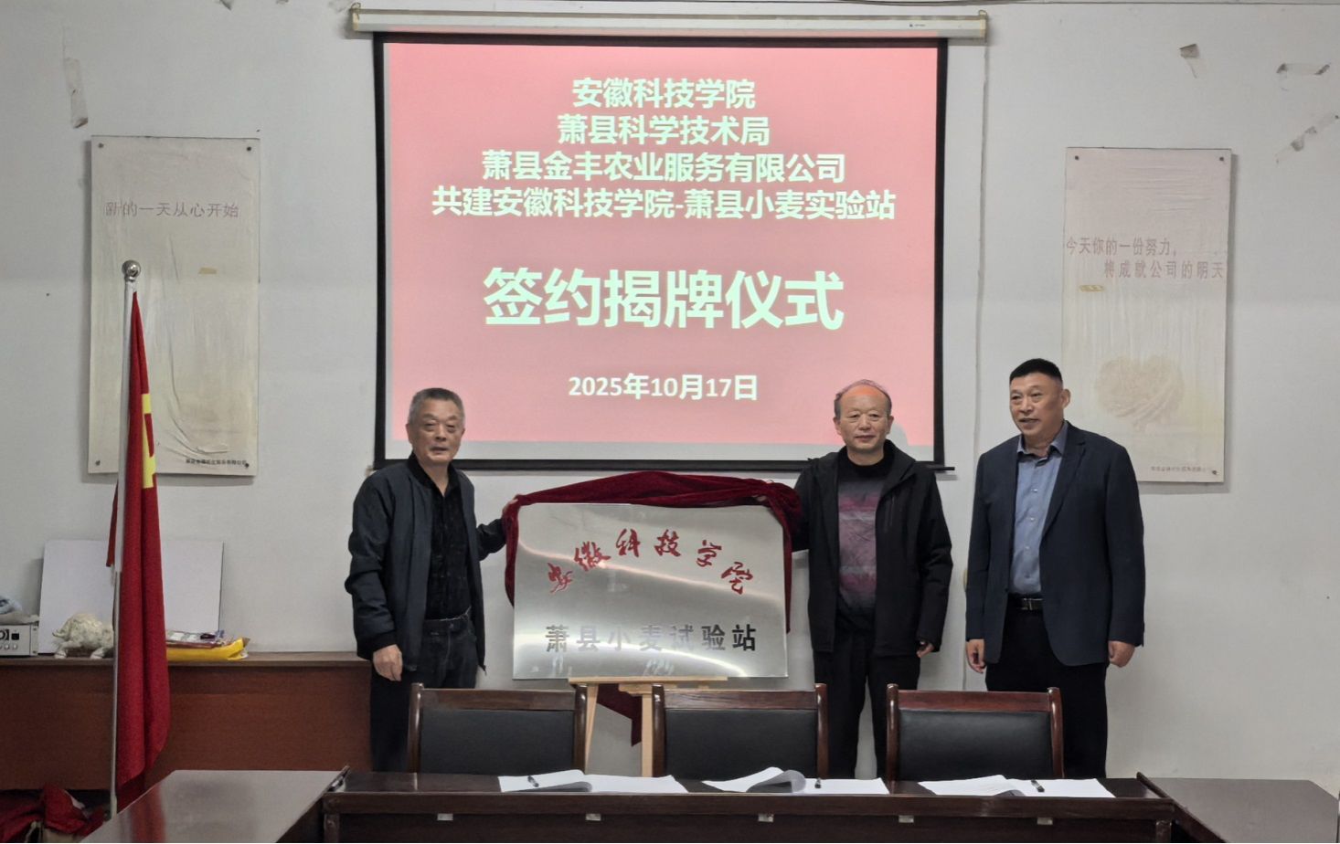 10月17日上午,“BB手机官方网站_BB(中国)-萧县小麦试验站”揭牌仪式在萧县黄口镇举行。该试验站由BB手机官方网站_BB(中国)、萧县科学技术局、萧县金丰农业服务有限公司三方共建,相关单位负责人出席揭牌仪式。