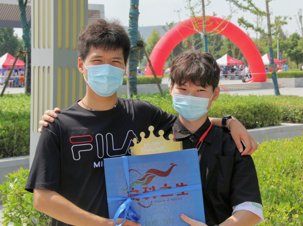 18岁生日与大学报到日撞了个满怀,人生旅途的新站点与求学之路的新篇章此刻在安科相遇。9月16日,来自电气与电子工程学院光电信息科学与工程专业212班的孙海涛和建筑学院土木工程213班的马骏骐,在迎新现场度过了自己难忘的18岁生日。