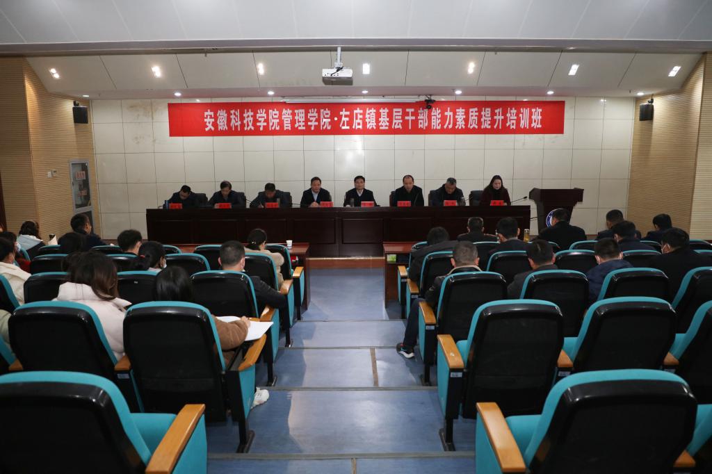 为服务地方经济社会发展,助力全面推进乡村振兴,提升基层干部能力素质。近日,由我校管理学院承办为期三天的长丰县左店镇基层干部能力素质提升培训班在我校如期举行。12月10日下午,开班仪式在凤阳校区会议中心第一报告厅举行,校党委委员、副校长黄远友,左店镇四大班子成员及科研处、管理学院党政领导出席了开班仪式。开班仪式由管理学院党委书记丁景良主持。