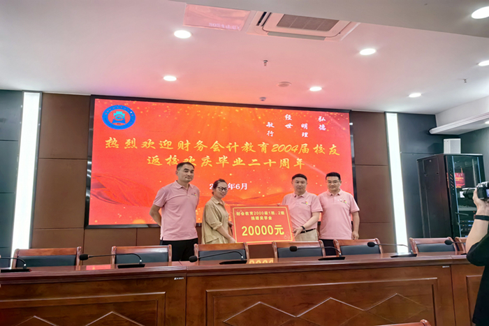 6月22日至23日,2000级财务会计教育专业三十余位校友组织返校联谊活动,欢庆毕业二十周年。时任教师代表焦立新、胡月英、胡振江、李忠、宋述雄等应邀出席,财经学院党政领导、在校学生代表参加活动。联谊会由原班主任、学院工会主席陈继东老师主持。