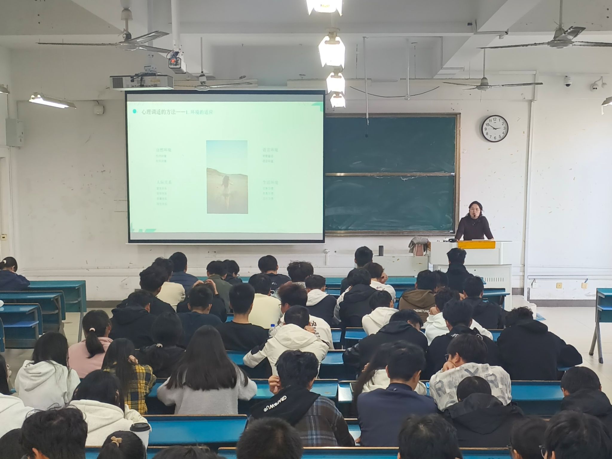 讲座伊始,杨小晗通过与新生互动“我心目中的大学”引入“新生适应性问题”的主题,她先是用生动的语言讲解了心理健康对大学生们成长成才的重要意义,又向同学们阐述了新生易出现的适应性问题。随后,她重点向新生详细介绍心理调适方法,她表示,新生们要正确认识心理健康,学会用科学的态度对待心理健康;要学会悦纳自己,挖掘自身优势资源,培养积极心理品质;要学会自我调适,加强与老师、同学间的交流,确立个人发展目标;要学会求助,善于利用朋辈支持和校园心理咨询服务等资源。讲座结束后,同学们积极提问,杨小晗耐心一一予以回答。