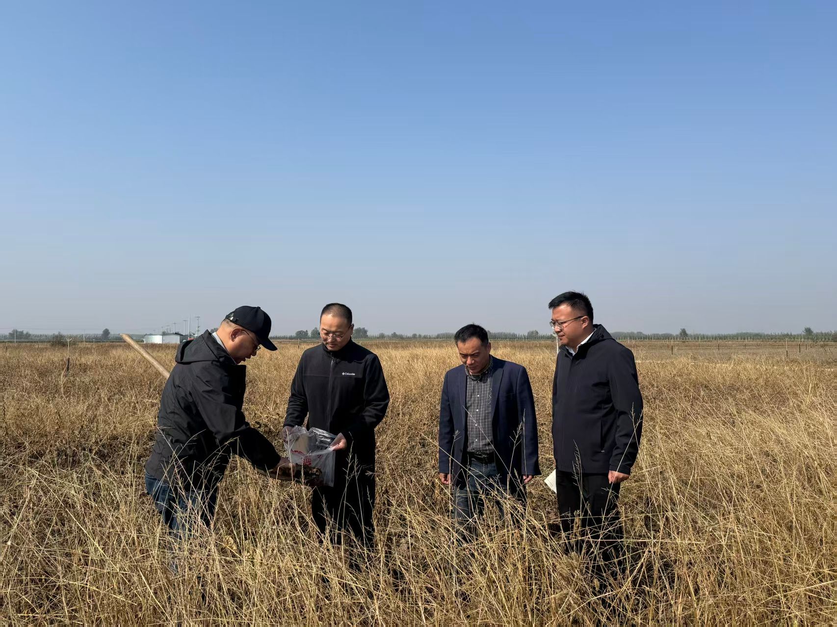李忠一行人深入田间地头实地考察当地农作物的种植情况,详细询问当地作物种类、种植方式、土地灌溉及施肥等制约作物高产的农业发展的关键问题。针对高标准农田肥力提升、作物单产能力提升等问题,李孝良现场给出增加有机肥施肥量、进行土地深耕等多种解决方案。为更加准确掌握土地肥力状况,专家团队在几种不同田地进行现场土壤采样,通过实验室化验确定肥力缺失情况,为土壤改良提供精确数据,为黄咀村种植大户提供专业技术帮扶。