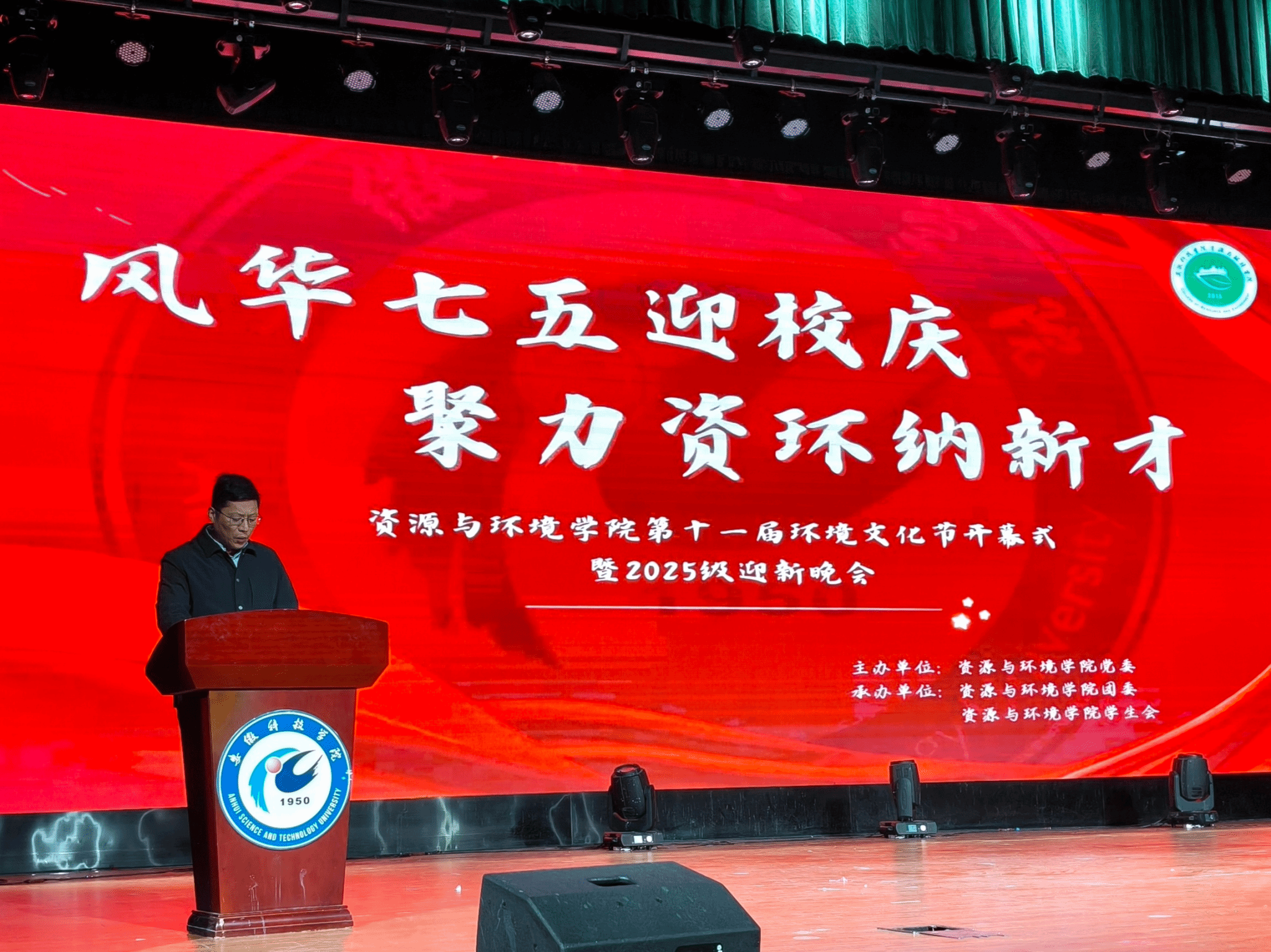 为促进新老生交流,助力2025级新生快速融入资环大家庭,11月18日晚,资源与环境学院以“风华七五迎校庆,聚力资环纳新才”为主题在大学生活动中心举办第十一届环境文化节开幕式暨2025级迎新晚会。资源与环境学院党政领导及全体辅导员出席本次活动,资源与环境学院2024级,2025级全体学生参与此次活动。