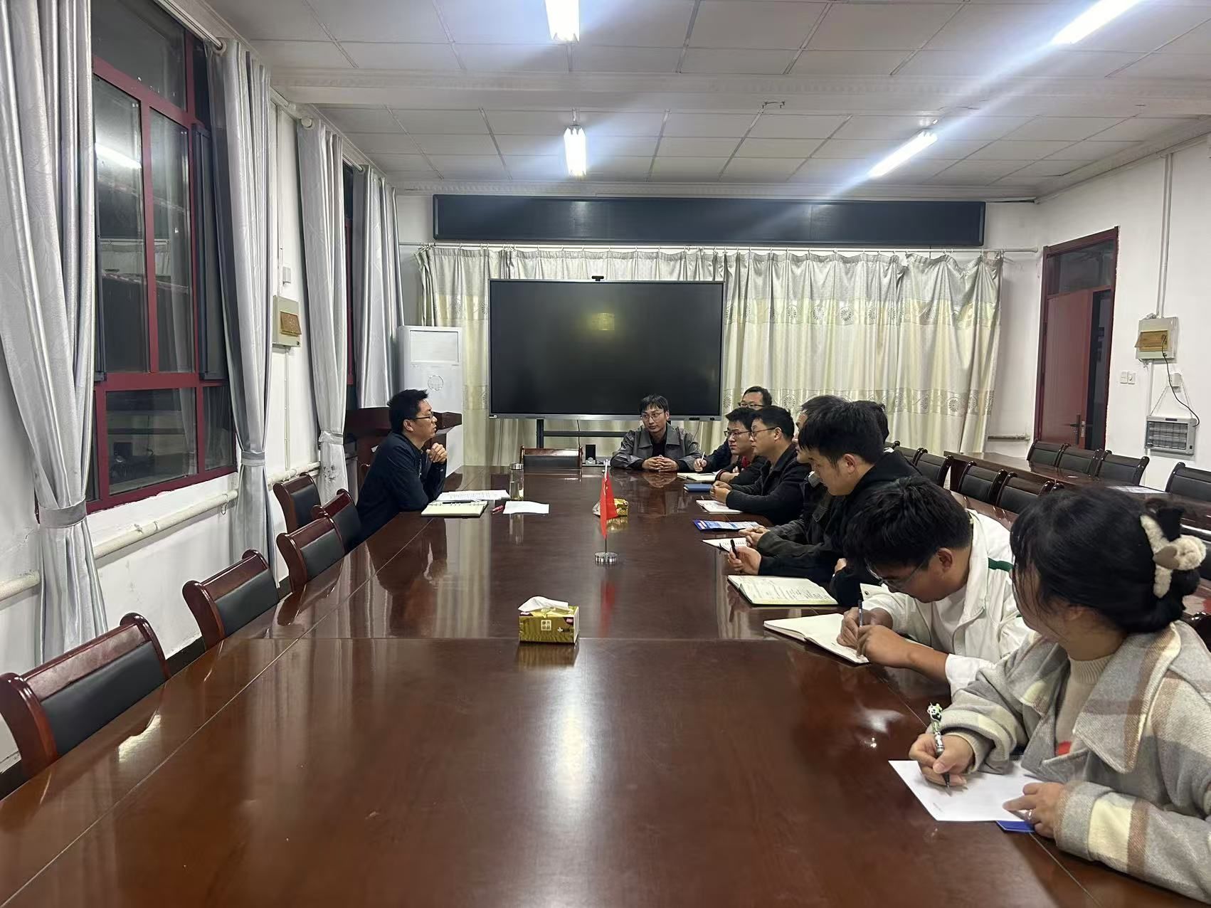 张轶辉领学了高校教师职业道德规范等制度,并对大家的学习生活工作提出几点期待,一是希望大家深入学习贯彻习近平新时代中国特色社会主义思想,牢记“为党育人、为国育才”使命,不断提升自身政治素养。二是希望大家努力学习、积极工作、潜心科研,尽快实现角色转变,站稳讲台,不断提高教书育人、科学研究的能力和水平,争做塑造学生品格、品行、品味的“大先生”。三是希望大家认真学习领会有关文件精神,不断加强师德师风建设,切实加强家风建设,将廉政要求内化于心、外化于行。四是希望大家相互学习、团结互助,遵循思想政治工作规律、教书育人规律、学生成长规律,关心关爱学生,热情帮助学生,争做学生锤炼品格的引路人、学习知识的引路人、创新思维的引路人、奉献祖国的引路人。