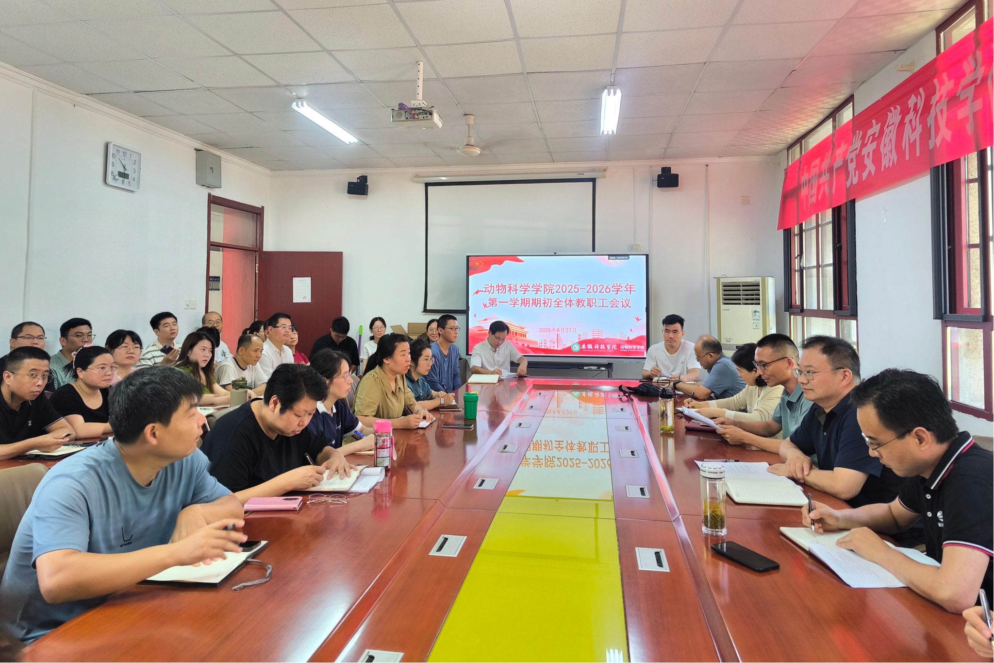 8月27日,动物科学学院在学院会议室召开2025年秋季学期期初全体教职工大会,部署新学期重点工作。学院党委书记甘宗平,党委副书记、副院长(主持工作)周金星,党委副书记、纪委书记汤帅,副院长华金玲及全体教职工参加会议,会议由汤帅主持。