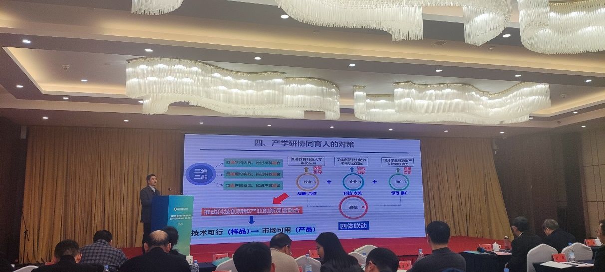 会上,邹海明作了《产学研协同育人的堵点和对策》为主题的报告,详细阐述了“学生与企业不相适应,学与研不相适应,研与产不相适应”这三个堵点,并结合资源与环境学院工作实际,介绍了解决这三个堵点的相关探索与实践。