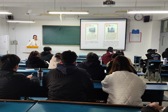 11月6日,农学院专职辅导员薛晶晶在求知楼B207为“青马工程”学员作了题为《中国共产党百年奋斗的光辉历程和历史经验》报告。从新民主主义革命时期“开天辟地”的红船起航、星星之火燃遍华夏,到社会主义革命和建设时期“改天换地”的艰苦奋斗,再到改革开放和社会主义现代化建设新时期“翻天覆地”的创新变革,直至中国特色社会主义新时代“惊天动地”成就,薛晶晶借助一幅幅波澜壮阔党史画卷,向同学们讲述了党带领人民砥砺奋进伟大历程。