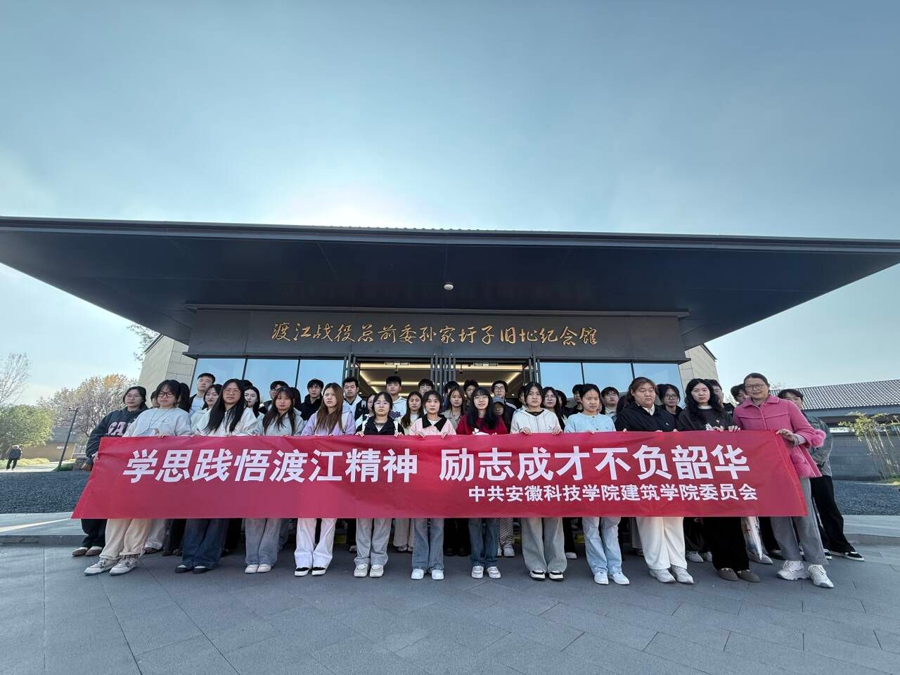 为筑牢信仰之基、传承红色血脉,11月12日下午,建筑学院组织学生党员、发展对象、入党积极分子等50余人前往渡江战役总前委旧址孙家圩子纪念馆开展“学思践悟渡江精神 励志成才不负韶华”沉浸式党课实践教育。建筑学院党委副书记谢宜勤、各学生党支部书记带队参加。