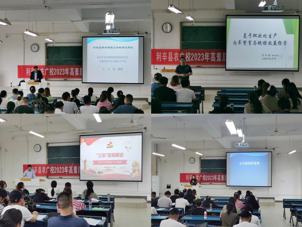 为了培养造就一批综合素质高、经营管理能力强、养殖技术过硬的黄淮山羊养殖专业家庭农场主,示范引领广大农民发展黄淮山羊养殖,发展地方优势农产品品牌,带动农民增收致富,促进农业扶贫产业转型升级、农村面貌的持续改变、农民素质不断提高,4月17日至19日,2023年利辛县高素质农民黄淮山羊养殖专业培训班在BB手机官方网站_BB(中国)第一报告厅开班,继续教育学院党支部书记、院长杨维来,利辛县农广校副校长李明,利辛县农广校工作人员、村干部、养殖合作社成员共60余人参加了开班典礼。