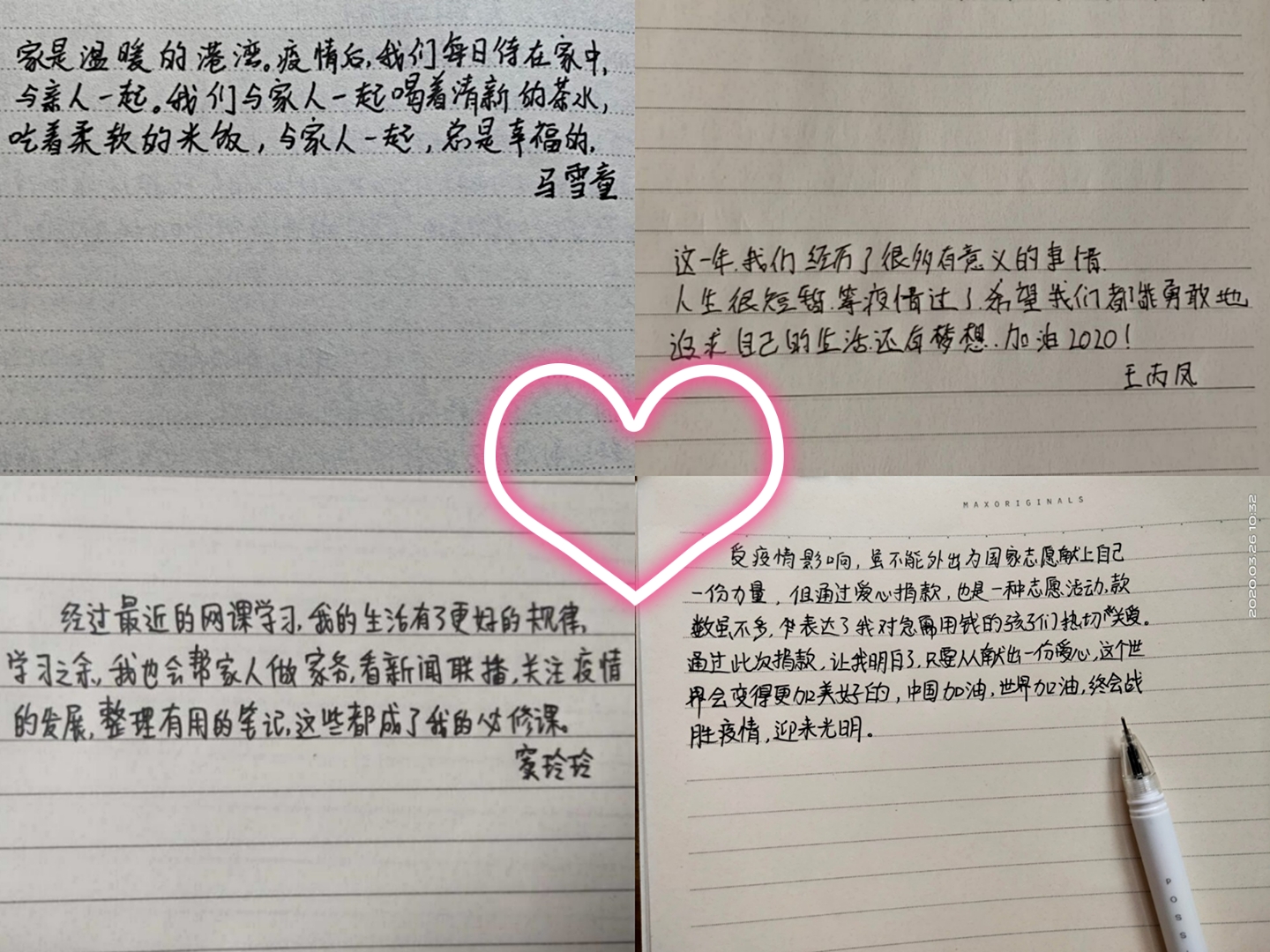 同学的留言透露出他们宅家“雷锋行”的收获与成长。