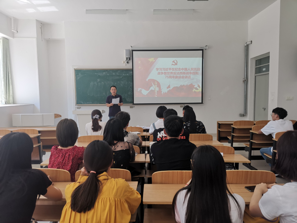 会上,大家敞开心扉,积极发言。辅导员蒋臣说:“抗日战争胜利75年来,中国发生了翻天覆地的变化,全球有目共睹的。特别是这次疫情,更能体现出我们国家和我们党的先进性。作为辅导员,我要把爱国主义精神贯彻落实到工作中,通过专题班会、主题团日、案例分析等形式,带领同学们全面学习,提升学生爱国主义意识”。党员黄璐璐说:“先烈们在艰苦的抗战环境下,仍然满腔热血的投入战争中,正是因为他们坚忍不拔、宁死不屈的抗争,用鲜血和生命才换来我们今日的幸福生活。这种伟大精神,会一直激励着我们这些后辈奋发向上,为中华民族的伟大复兴贡献自己的一份力量”。