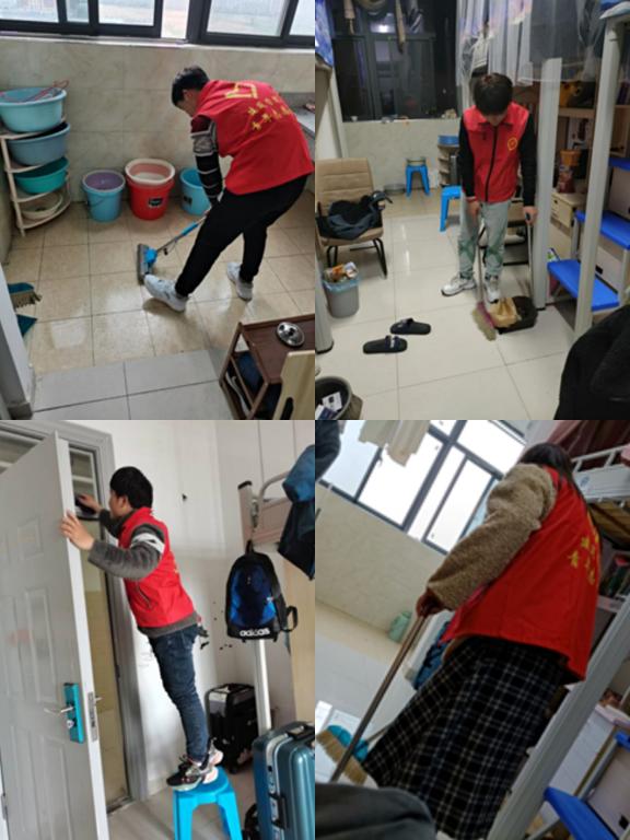 早在返程车票开售之日,青年志愿者协会成员就确定了报到日当天最早的行程。来到宿舍放下行囊,便开始在所在宿舍忙活起来,开窗通风、清扫垃圾、整理物品、晾晒被褥,不放过任何一个角落,确保宿舍成员返校有一个干净、整洁、卫生、安全的休息环境。