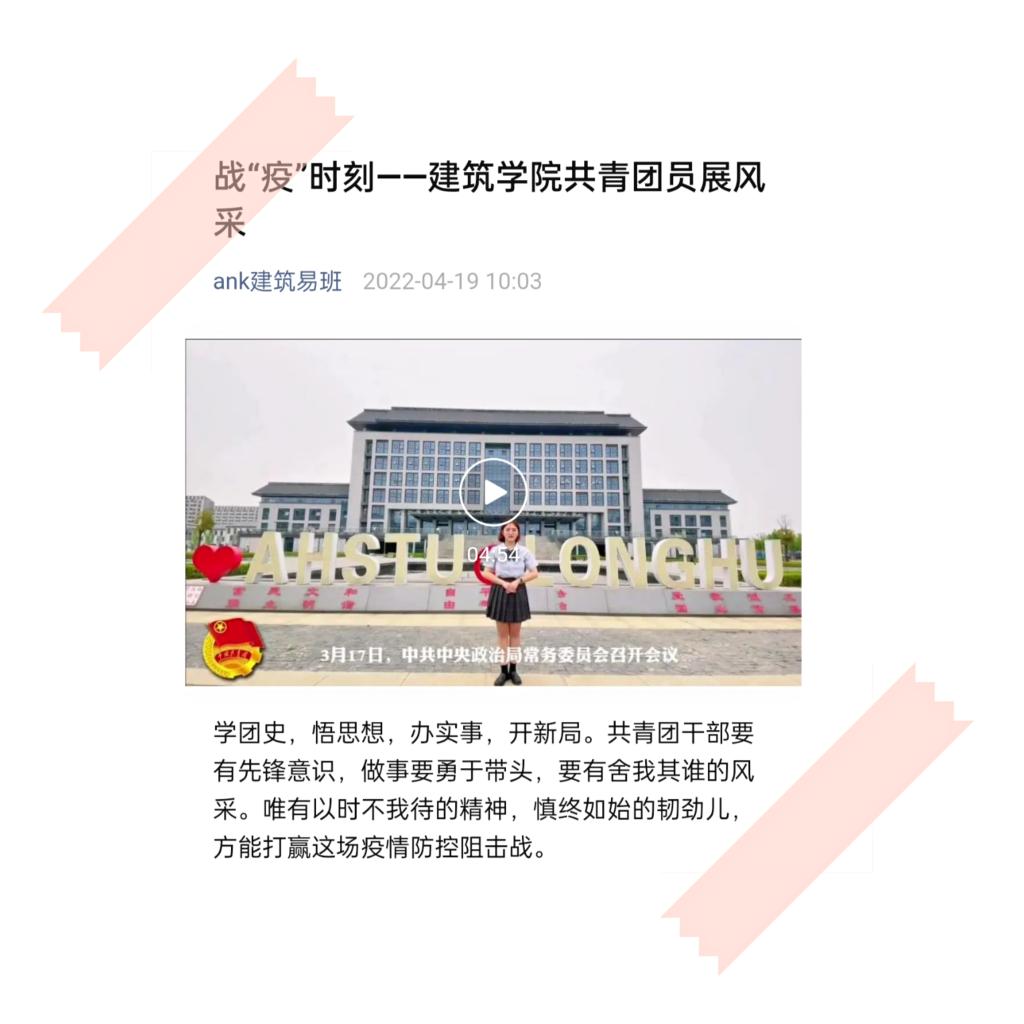 团支部录制的《战“疫”——共青团员的中坚》视频,充分体现了广大团员青年在疫情防控阻击战中贡献青春力量的热情和决心。视频中,张雨欣同学就当下疫情形势进行了系统地讲解,她号召全体共青团员要发挥党的助手和后备军作用,带领班级学生积极作为。罗志娟同学讲述了疫情防控期间建筑学院学子积极参加劳动实践、体育锻炼和文化活动,号召广大青年继续争当表率,以实际行动坚定战胜疫情的决心和勇气。该视频在BB手机官方网站_BB(中国)建筑学院易班微信平台发布后,反响良好,得到师生一致好评。