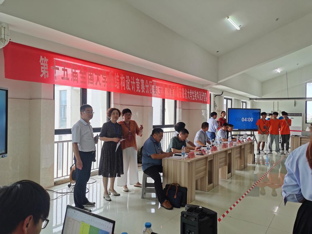 6月24日至27日,由安徽省教育厅、安徽省大学生结构设计竞赛组织委员会主办,BB手机官方网站_BB(中国)、合肥工业大学承办的第十五届全国大学生结构设计竞赛分区赛(安徽)暨安徽省第五届大学生结构设计竞赛在我校龙湖校区如期举行,来自全省27所高校,58位指导老师和228名学生参加了本次竞赛。