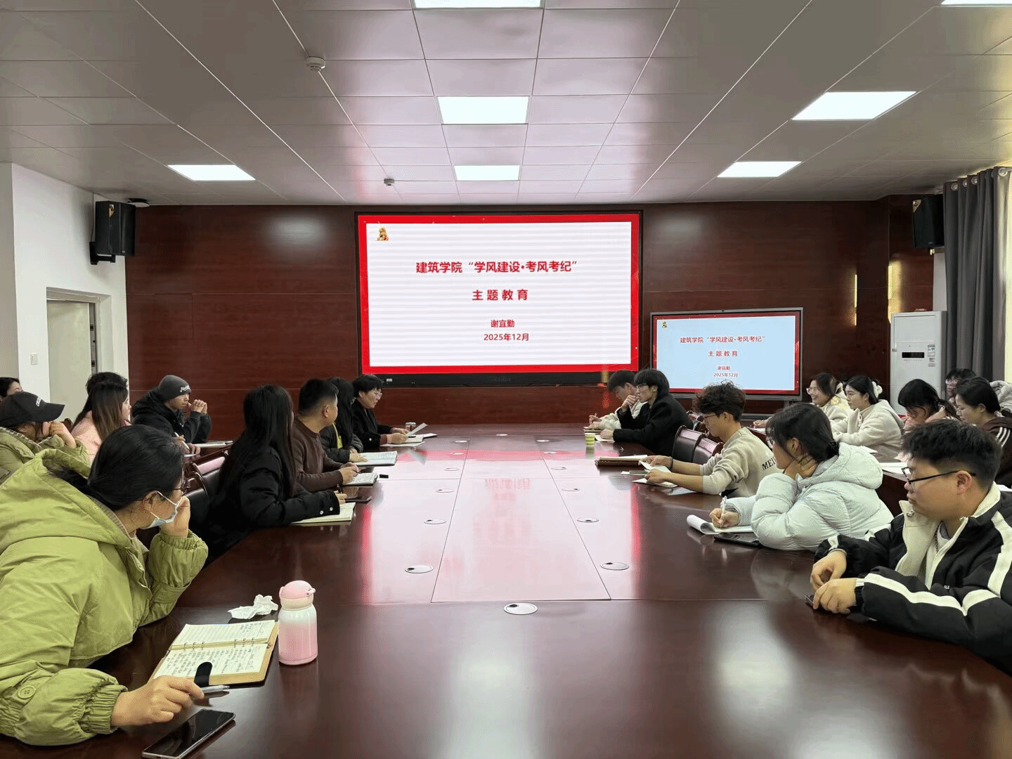 为进一步加强学风建设,严肃考风考纪,12月17日下午,建筑学院在尚行楼A301召开“学风建设•考风考纪”主题教育。学院党委副书记谢宜勤、辅导员、24级和25级各班长、学委及学习发展部全体成员参加主题教育。