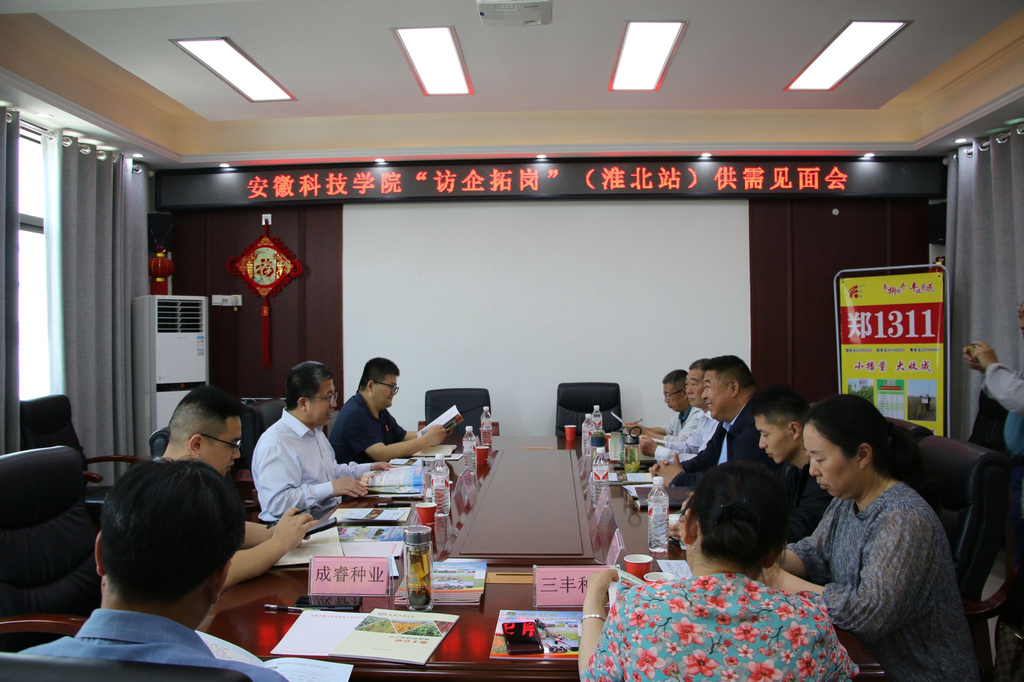 5月19日上午,何世潮一行在安徽柳丰种业科技有限责任公司进行“访企拓岗”(淮北站)供需见面会,受到了公司董事长刘超的热情接待。何世潮对刘超精心组织这次座谈会和热情接待表示感谢,他介绍了此次到访的目的主要是访企拓岗,并简要介绍了学校办学历史、毕业生“四能人才”特点及推介了农学院“一领五农”党建品牌。李文阳简要介绍农学院师资力量、专业设置、学科建设、人才培养、校外实习实训基地、科研团队、研究生培养等情况,重点介绍了生物育种科学专业相关情况,提出了校企科研合作的方向。汪道兵介绍了学校、学院2024届毕业生相关情况,诚邀与会企业来校进行种业人才专场招聘。会上,濉溪县五铺农场、安徽隆跃农业发展有限公司、安徽永民种业有限责任公司、淮北双收种业有限公司、淮北市三丰肥业有限公司、淮北成睿种业有限公司等六家企业应邀参加见面会,参会的企业代表一一做了交流发言,介绍了企业的发展情况和人才需求。