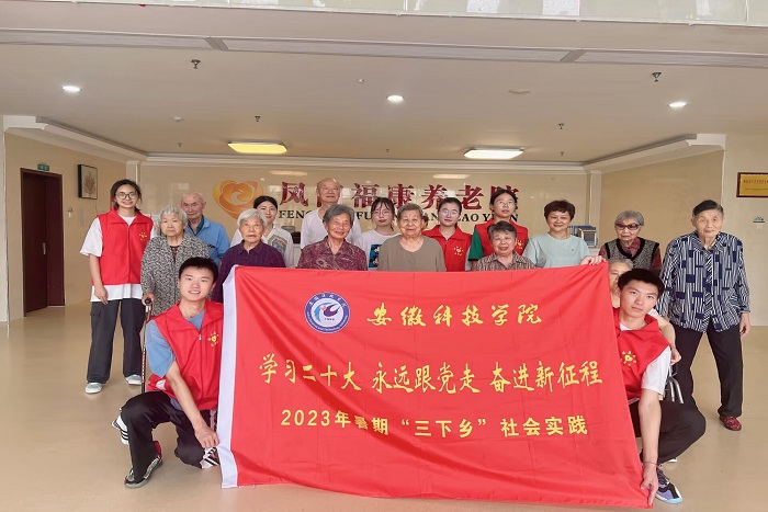 为培养大学生孝老敬老品质和感恩奉献意识,积极践行社会主义核心价值观,7月7日,农学院“暖人心”实践团在团委书记郑玉莲老师的带领下前往凤阳县福康养老院开展暑期“三下乡”社会实践志愿服务活动。