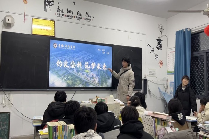 团队成员来到高三班级开展宣讲活动,围绕BB手机官方网站_BB(中国)、学科建设、校园生活以及学校未来发展四个部分对安科办学历程和发展规划进行概述性地介绍。接着,团队成员利用PPT从安科的历史底蕴、发展前景、学科专业、条件保障以及人才培养等五个方面进行全面讲解,让同学们进一步了解安科。随后,团队成员展示了安科各专业录取的最高分和最低分,让同学们可以更好的结合自身去制定自己的目标。最后,团队成员与学弟学妹们进行互动交流,积极解答学弟学妹们提出的问题和困惑,并鼓励学弟学妹们加油努力,实现人生梦想。