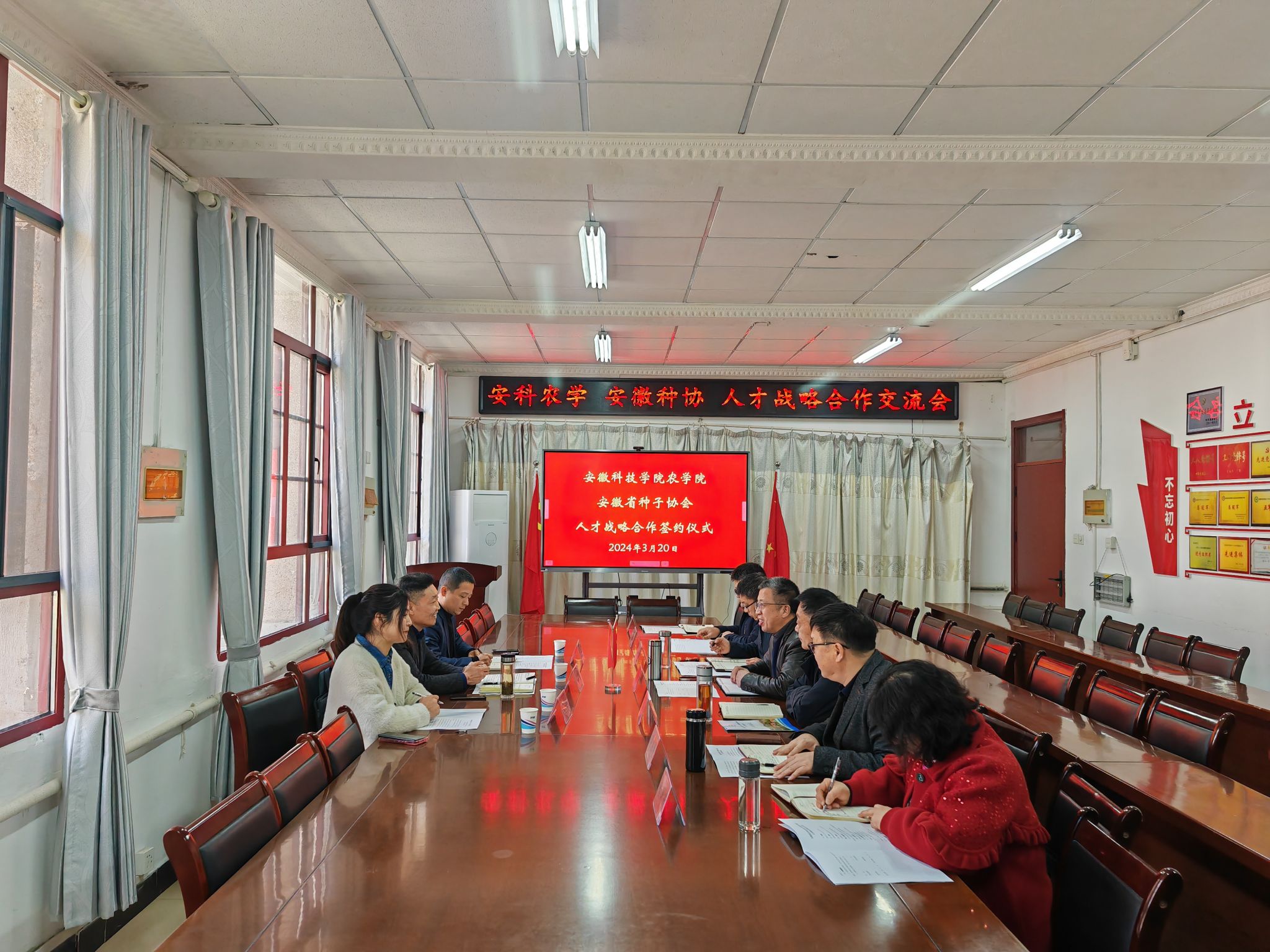 农学院党委副书记张轶辉、安徽省种子协会秘书长叶飞代表双方签订了人才战略合作协议。