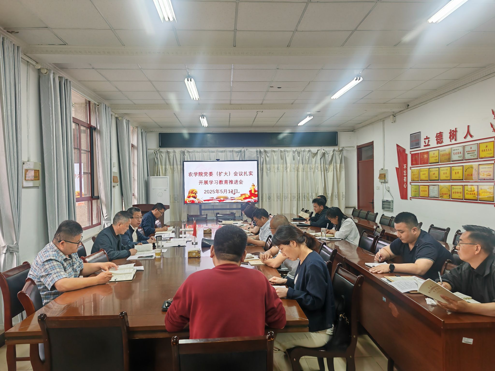 5月13日下午,农学院在学院会议室召开党委(扩大)会专题部署深入贯彻中央八项规定精神学习教育工作推进会,认真落实党中央决策部署、省委和学校党委的工作要求,分析总结前一阶段工作开展情况,研究部署下一步重点任务。学院党委委员、党支部书记、组织员参加会议,会议由学院党委书记何世潮主持。