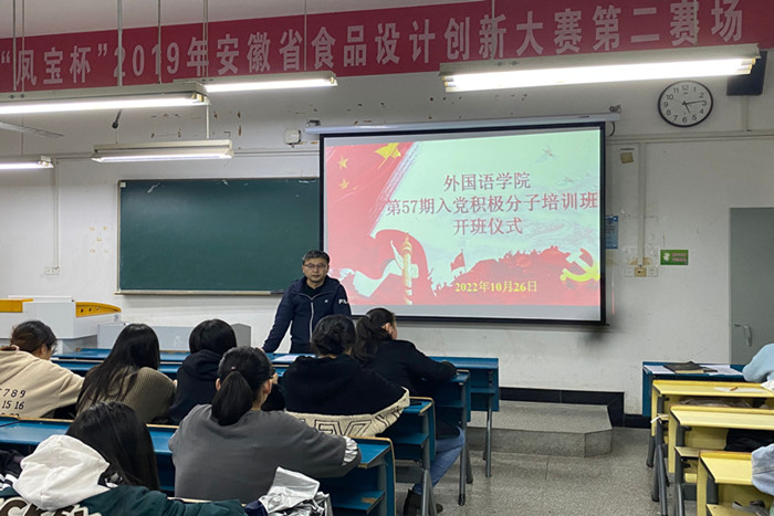 为加强对入党积极分子的教育培养,夯实党员发展基础,10月26日,外国语学院在求知楼B107教室举行第57期入党积极分子培训班开班仪式。学院党委副书记张海亮、党政办主任陈慧中以及第57期培训班全体学员出席开班仪式,仪式由陈慧中主持。