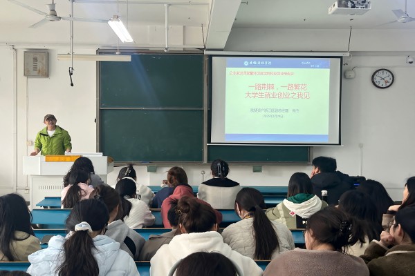 3月28日,外国语学院在新A108教室举办企业家进课堂暨优秀校友就业创业报告会。我校2006届英语专业毕业生、歌斐资产管理有限公司浙江区副总经理梅杰担任主讲,学院第62期入党积极分子培训班全体学员、2022级全体学生聆听报告。报告会由学院党委副书记张海亮主持。