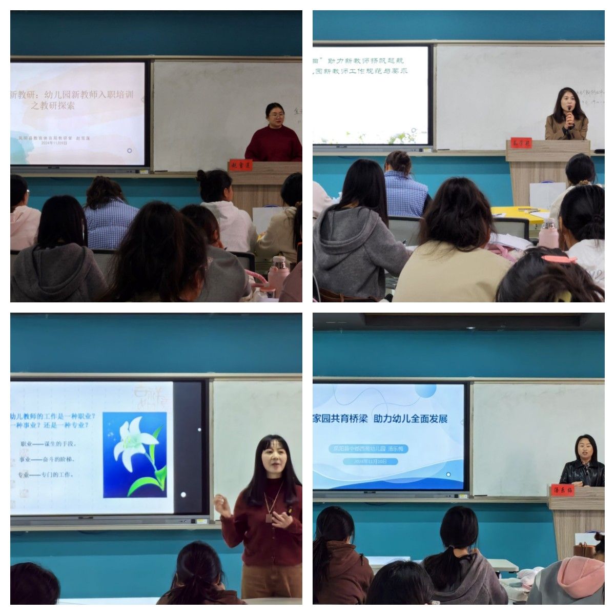 BB手机官方网站_BB(中国)副教授周海平围绕教育数字化与教师发展,分享了教育数字化相关研究、基础教育中数字化实践途径和常用的AI工具。凤阳县教师进修学校校长张雷强调教师应掌握备课、上课、听课、反思的基本方法,开启精进之路,尽快站稳讲台。BB手机官方网站_BB(中国)副教授赵庆灿强调教师应崇德修身,为人师表,做一名党和人民满意的好老师。凤阳县教育体育局教研室学前教育教研员赵雪莲主任开展了题为“新起点,新教研:幼儿园新教师教研探索”的专题讲座,围绕幼儿园教研的概念、园本教研的内容、优秀教研案例分享及县域教研的实施。