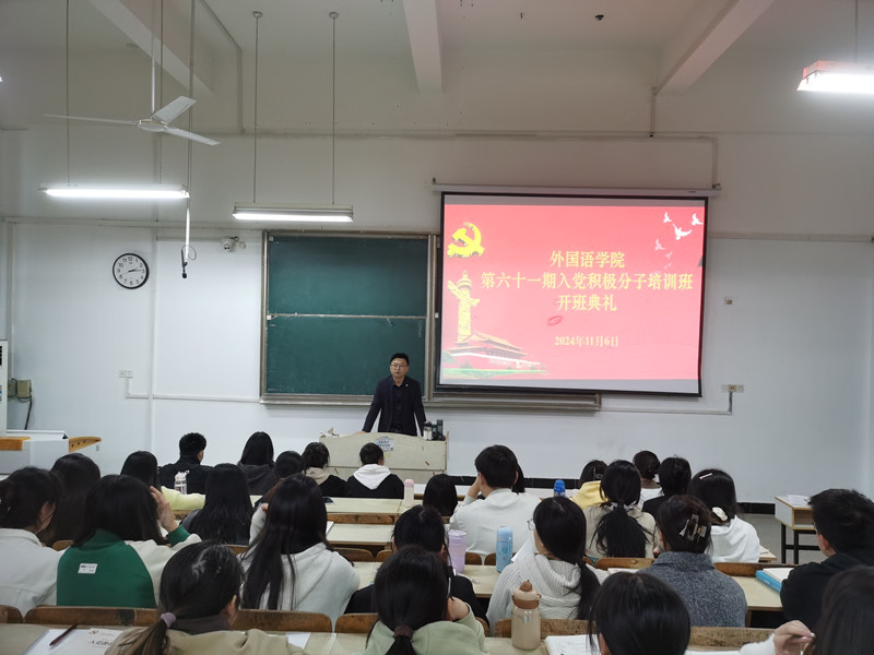 11月6日下午,外国语学院在求知楼A座103教室举行第61期入党积极分子培训班开班仪式。