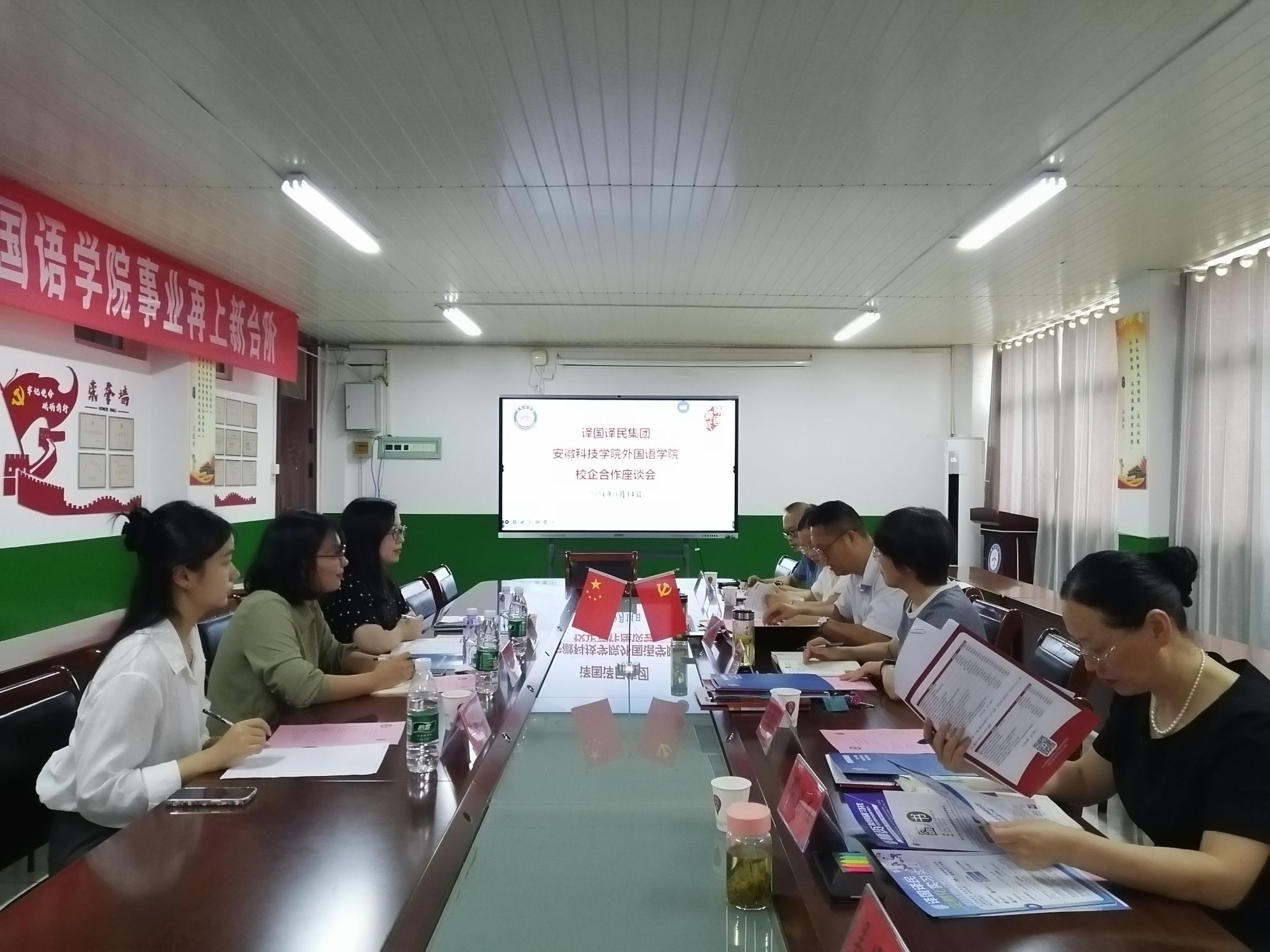 9月14日上午,译国译民集团党支部书记洪细梅、高校事业部总经理郑莺、校企合作经理尹周锐等一行来我院开展校企合作事宜。外国语学院院长刘萍等党政领导和翻译专业教师参加了座谈会。会议由副院长洪民主持。