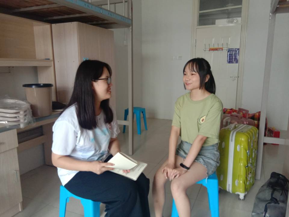 受疫情的影响,学校不允许家长进校,身形瘦小的宋志瑶在还没到校之前,一直处在慌张迷茫的状态下,“那么多行李该怎么搬到寝室?”入校以后这个问题迎刃而解。“我本来还挺担心该怎么办的,但是一到学校,学长学姐们就帮我拿行李,还帮忙搬到六楼,真的是太热心了!”