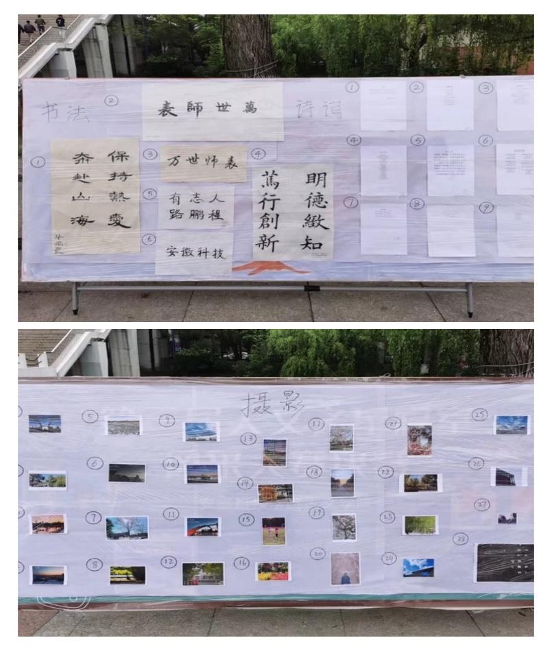 比赛的环节十分激烈,评委们仔细比对着每幅作品的优缺点进行细致地打分,同学们也积极参与易班上的优秀作品投票,评选出自己心中最优秀的作品。经人文学院分团委以及学生会审核,评委、学生投票,最终得出了各组获奖名单:摄影组一等奖由汉语言文学201班吴丽君获得,二等奖由法学201宋孝庆和资源与环境192王苗苗获得,三等奖由汉语言文学182侯云鹤、机械工程209孔令庆获得。诗词组获奖:一等奖由法学191钱韫敏获得,二等奖由动物医学192徐王倩、汉语言201徐一鸣获得,三等奖由法学191方翠翠、法学191吴承宇、法学191李翔获得。书法组一等奖由中药191陶军章获得,二等奖由法学203张岩、汉语言201毕雨晨获得,三等奖由汉语言202程姜容,汉语言202胡梦瑶、法学203周冰玉获得。绘画组一等奖由汉语言192程依宁获得,二等奖由法学191程春熹、建筑学191伍宇轩获得,三等奖由法学191黄梦云、动物医学192陈紫玥、园艺192吴潇雅获得。