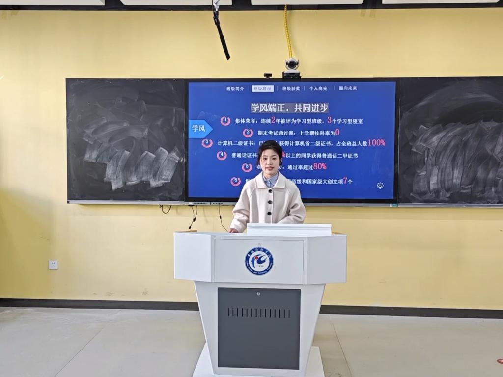 答辩过程中,各班代表依次上台展示,通过PPT演示介绍班级概况、班级工作理念和班级文化建设等情况,同时列举班级集体和班级成员荣获的各类荣誉奖项;答辩评委认真倾听大家的介绍,并在仔细审阅答辩班级申报材料的基础上,综合班级代表现场答辩表现情况进行严谨评分。