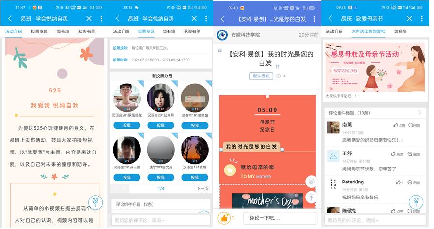 除此之外,人文心联也联系易班人员开展了感恩母亲节留言活动,同学们热情积极参加留言,写出了一些自己想要向母亲说的话,例如“妈妈,我爱你”,“妈妈,您做的饭真好吃”等等。这些真诚的话语至腑,让人感动,也给此次活动带来了更多的温情。在活动开展期间,同学们纷纷把自己想对母校和母亲说的话写在便利贴上,用文字记录伟大而平凡的爱,“ 妈妈,这些年你辛苦了,感谢您默默的付出,我爱你”;“ 妈妈,岁月静好,我伴你老”;“ 祝妈妈身体健康,不再腰疼”.... 一件件感人的事迹,一行行感恩的话语,一句句美好的祝福,同学们用文字来铭记感恩,传递自己的美好祝福。