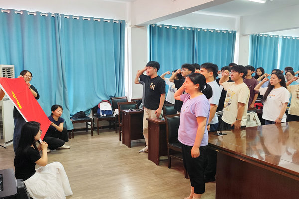 仪式在雄壮的《国际歌》中拉开序幕。王传林宣读学院2024年上半年发展的预备党员名单,参会领导和党支部书记为预备党员佩戴党员徽章。预备党员在学院党委副书记、纪委书记彭丽萍带领下,面向党旗、举起右拳,庄严宣誓,以铮铮誓言表达对党的无限忠诚和为共产主义事业奋斗终身的坚定信念。(特约通讯员:王传林 摄影:魏凤程 审核:张传德)