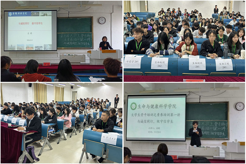 为强化学生骨干队伍的诚信意识,培养具有高尚品德和社会责任感的学生干部,11月3日下午,生命与健康科学学院在新知楼B304举办了以“与诚信同行,做守信学生”为主题的学生骨干专题培训。学院团委书记姜毅担任主讲人。24级各班级学生干部、学生会工作人员参加培训。