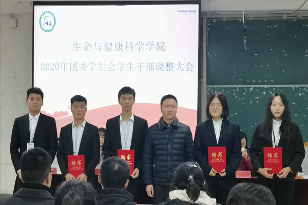 12月6日下午,生命与健康科学学院在新知楼B304教室召开2020年团委学生会学生干 部调整大会。学院党委书记詹学文、党委秘书彭丽萍、分团委书记王传林、分团委副书记刘国祥及专职辅导员黎冯梅出席会议。上一任学生会部分成员和现任团委学生会全体成员参加会议。会议由王传林主持。